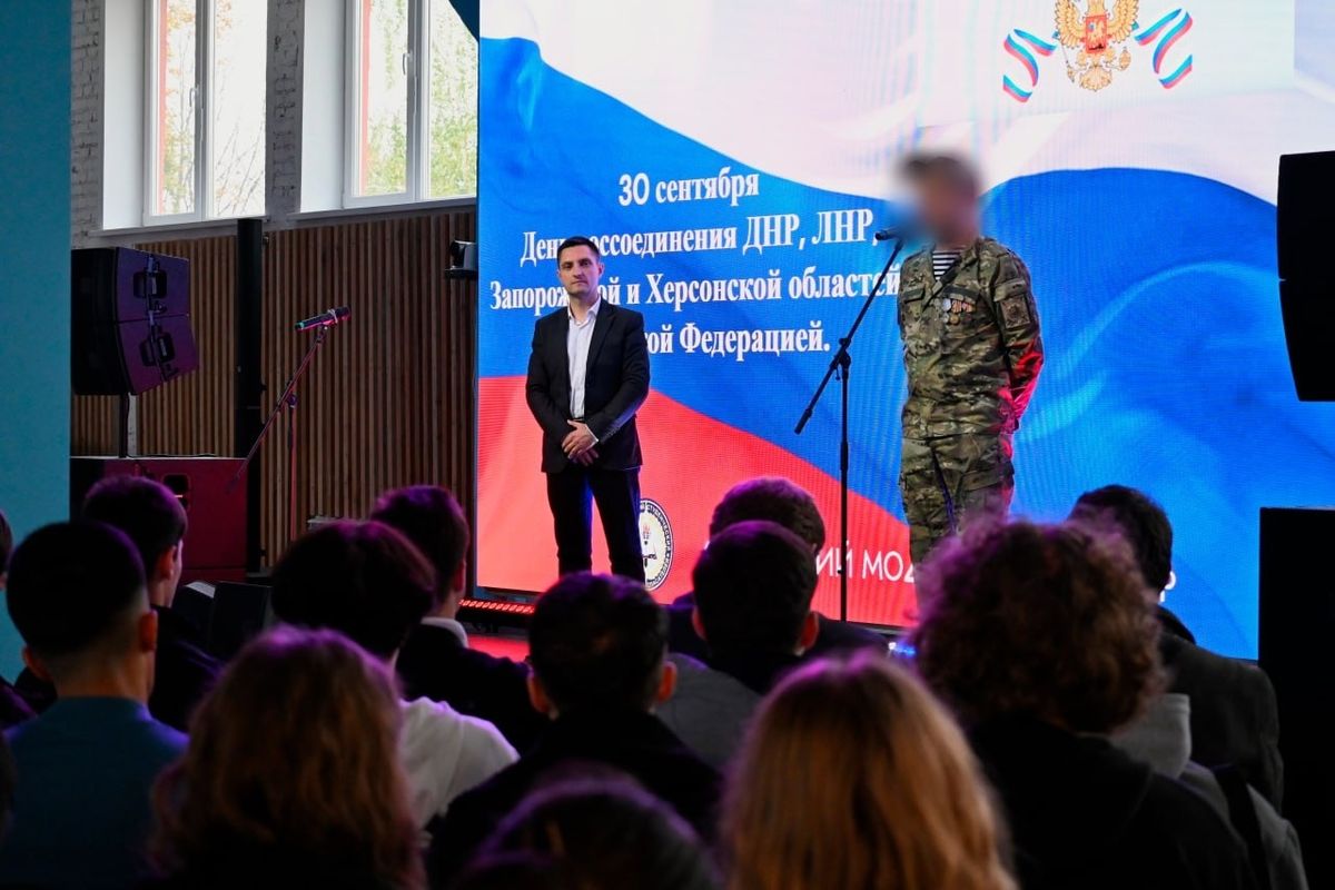 Вместе с преподавателями наши студенты побывали на важном патриотическом мероприятии, посвящённом Дню воссоединения с новыми регионами.