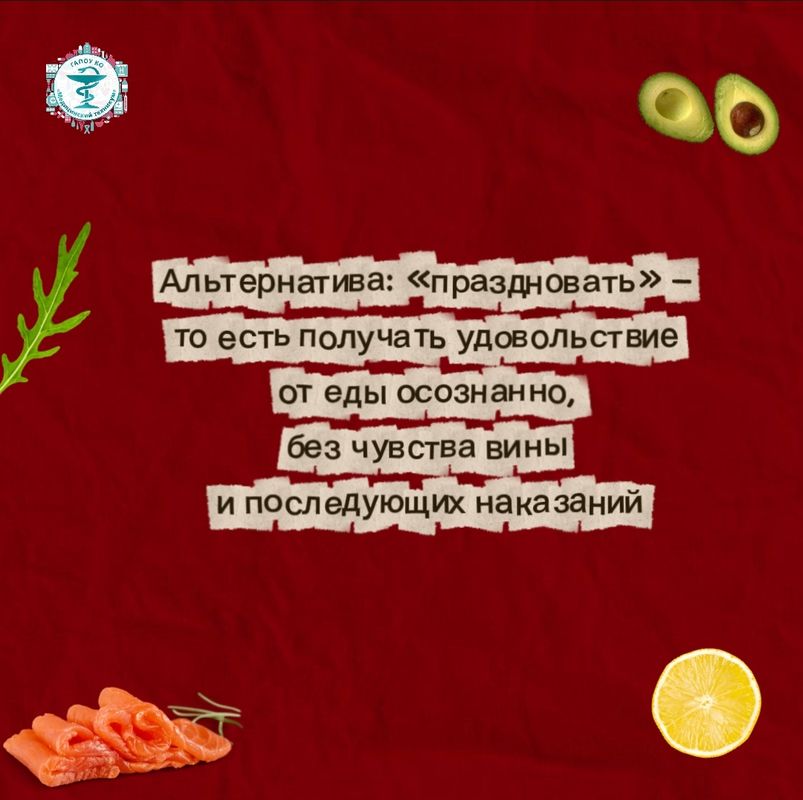 Альтернатива: «праздновать» — то есть получать удовольствие от еды осознанно, без чувства вины и последующих наказаний. Вина — худший новогодний подарок самому себе.