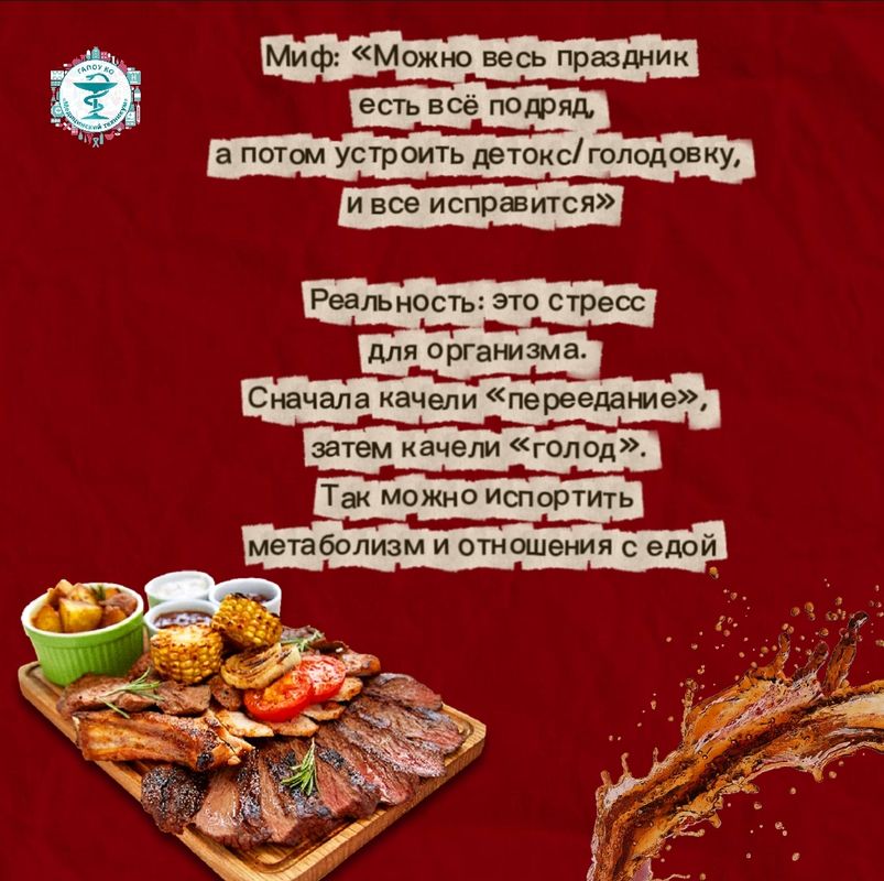 Миф: «Можно весь праздник есть всё подряд, а потом устроить детокс/голодовку, и все исправится».