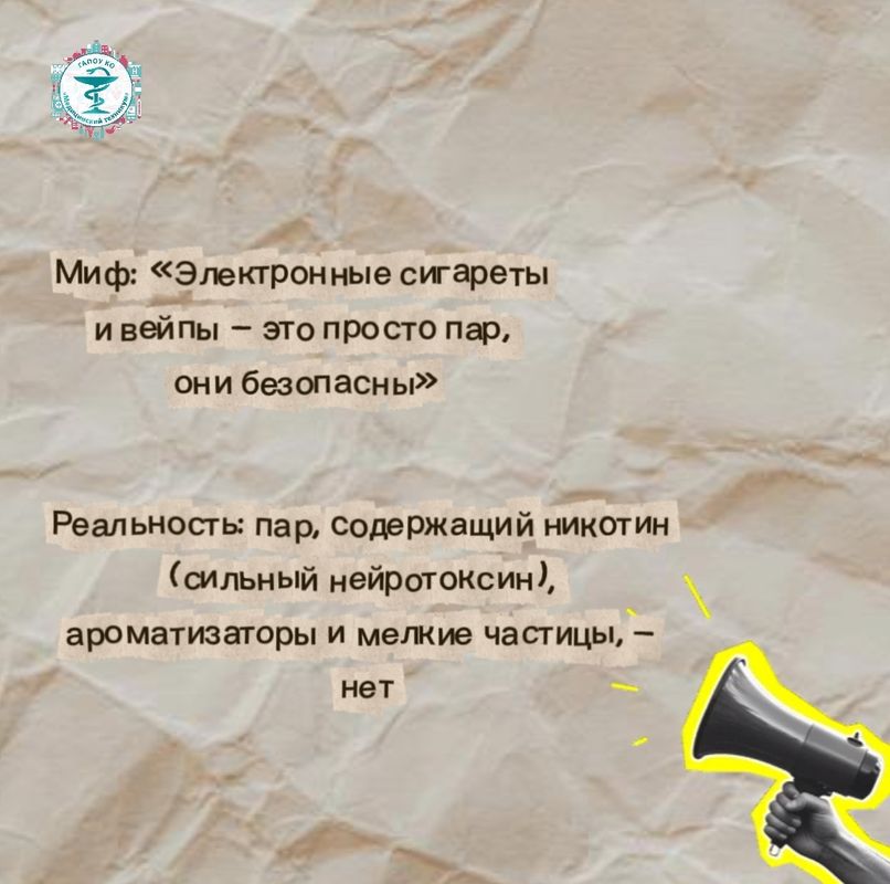 · Миф: «Электронные сигареты и вейпы — это просто пар, они безопасны».