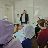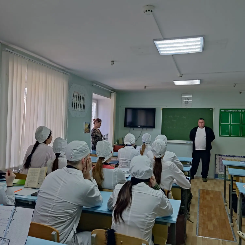 Михаил ответил на многочисленные вопросы студентов и преподавателей. Рассказал о тактической медицине, о самом сложном случае, о том, чем занимался до начала СВО.