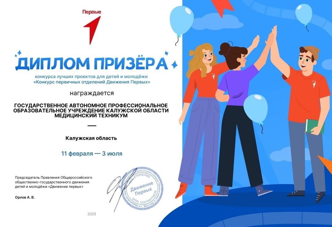 2025 – благодарственное письмо за активное участие в реализации проектов «Движения Первых», город Обнинск